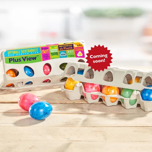 Hartmann’s Plus View™ carton lets eggs shine while cutting plastic waste.